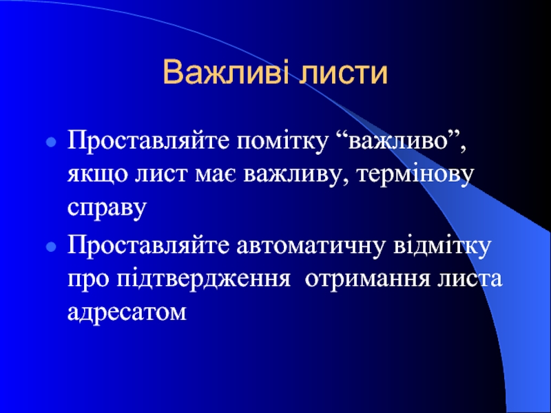 Проставляйте помітку “важливо”, якщо лист має важливу, термінову справу