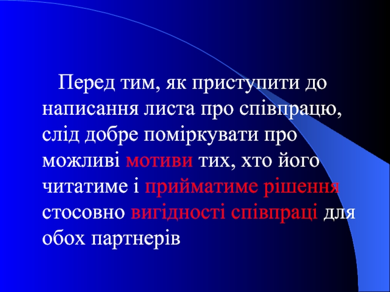 Слайд 5 Перед тим, як приступити до написання листа про співпрацю,