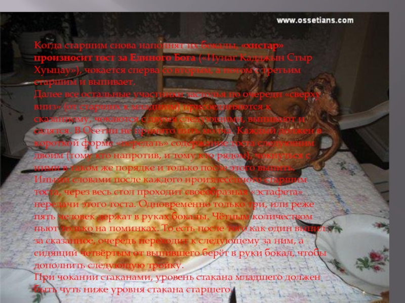 Слайд 18Некоторые правила осетинского застолья.