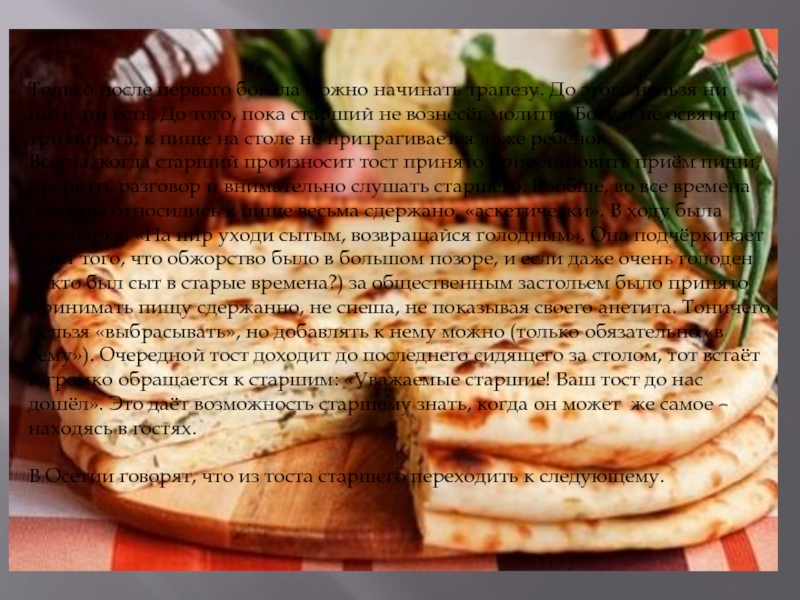 принято и за осетинским столом. Но кроме этого, для осетина...