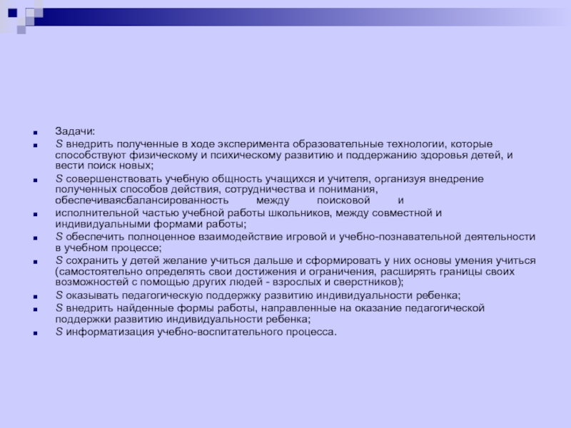 S внедрить полученные в ходе эксперимента образовательные технологии, которые способствуют физическому