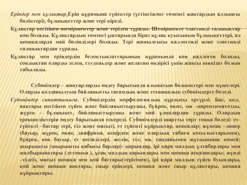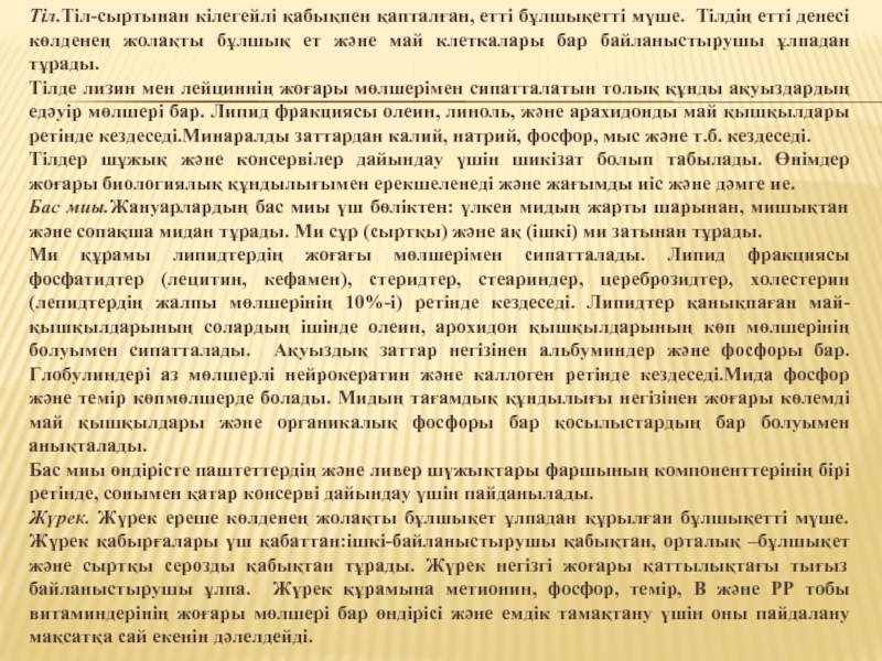 Слайд 9Бастар. Бастарға сүйектер, бас миы, бұлшық ет және тері кіреді, егер
