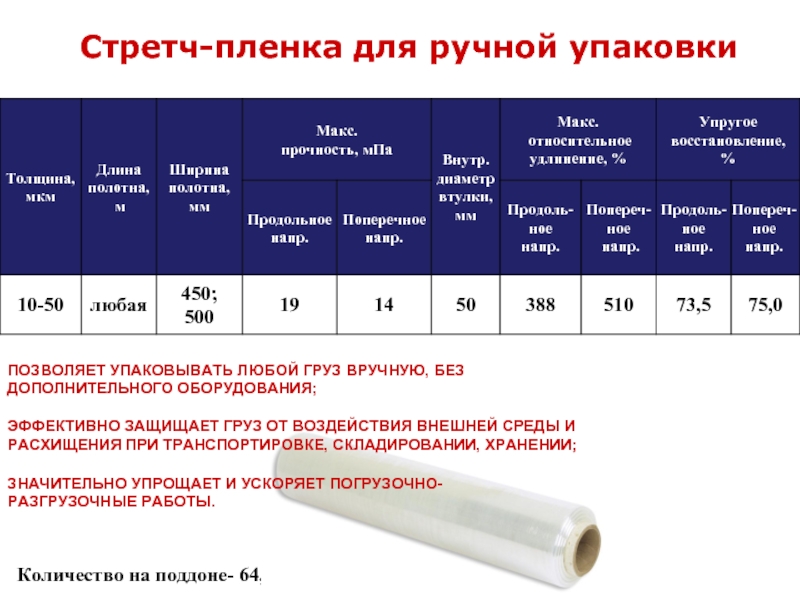 Уникальное свойство нашей продукции – слоя стретч- пленки имеют свойство прилипать друг к другу при прикосновении, не прилипая к упакованным в нее материалам;