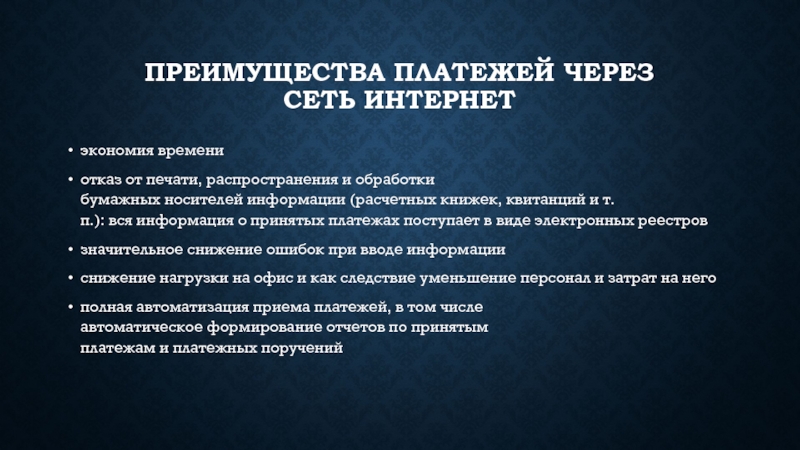 ПРЕИМУЩЕСТВА ПЛАТЕЖЕЙ ЧЕРЕЗ СЕТЬ ИНТЕРНЕТ