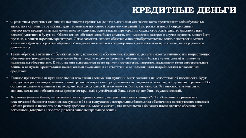 С развитием кредитных отношений появляются кредитные деньги. Физически они также