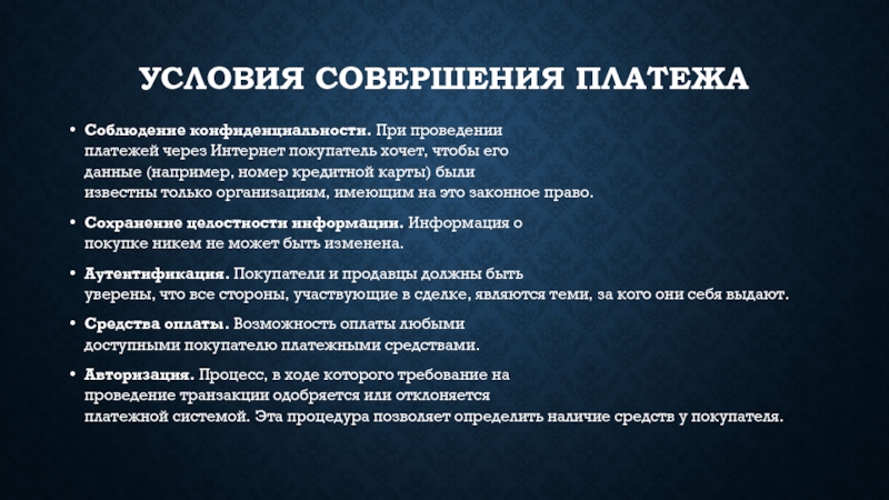 Слайд 18УСЛОВИЯ СОВЕРШЕНИЯ ПЛАТЕЖА