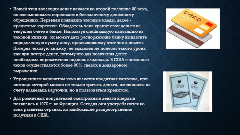 Слайд 6Новый этап эволюции денег начался во второй половине 20 века, он