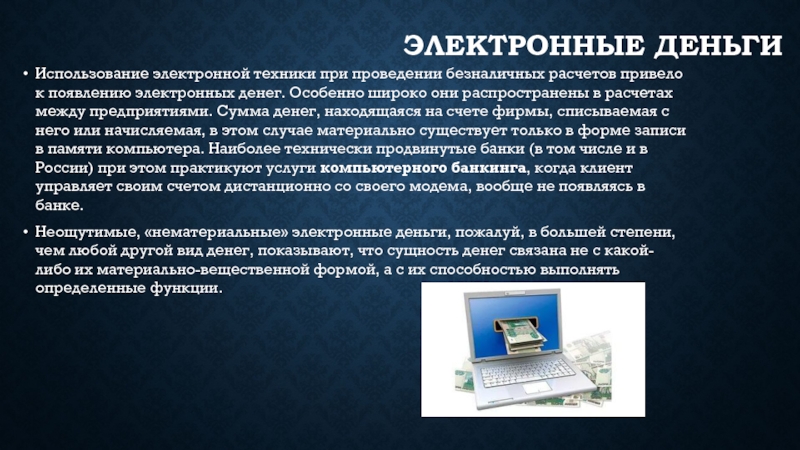 Слайд 14ЭЛЕКТРОННЫЕ ДЕНЬГИ