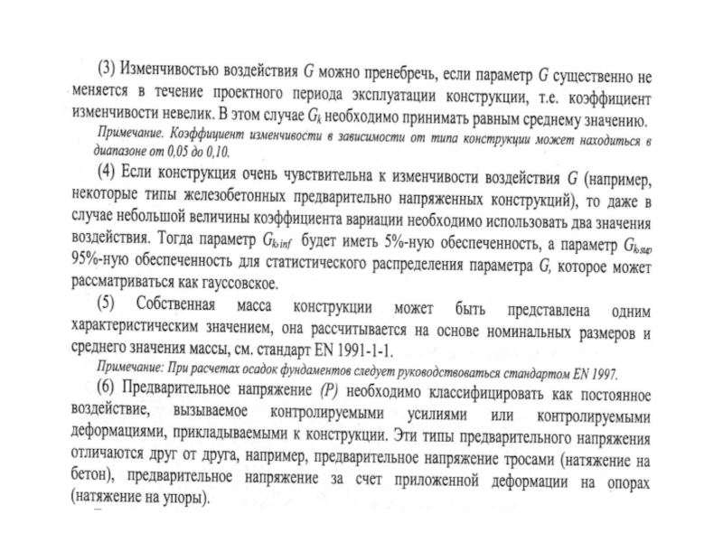 базовых переменных для определения структурной надёжности. При проектных расчётах свойства материалов (включая грунты и скальные породы)или продуктов представлены величинами, которые с заданной вероятностью остаются неизменными (статья 4.2( 1) - характеристическая величина определена в статье 1.5.4.1). Если данное свойство материала подвержено сильным изменениям, то при проверке предельных состояний следует принимать во внимание как верхнее, так и нижнее значение свойств материала