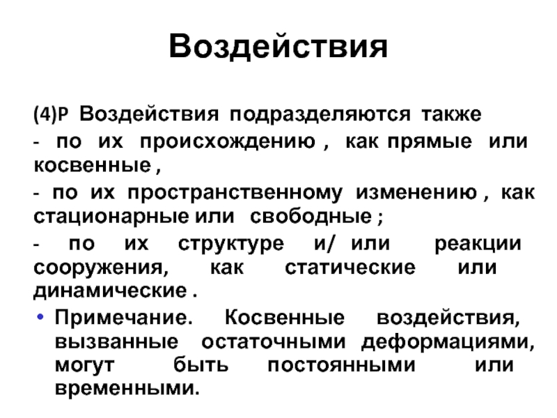 Примечание. Косвенные воздействия, вызванные остаточными деформациями, могут быть постоянными или временными.