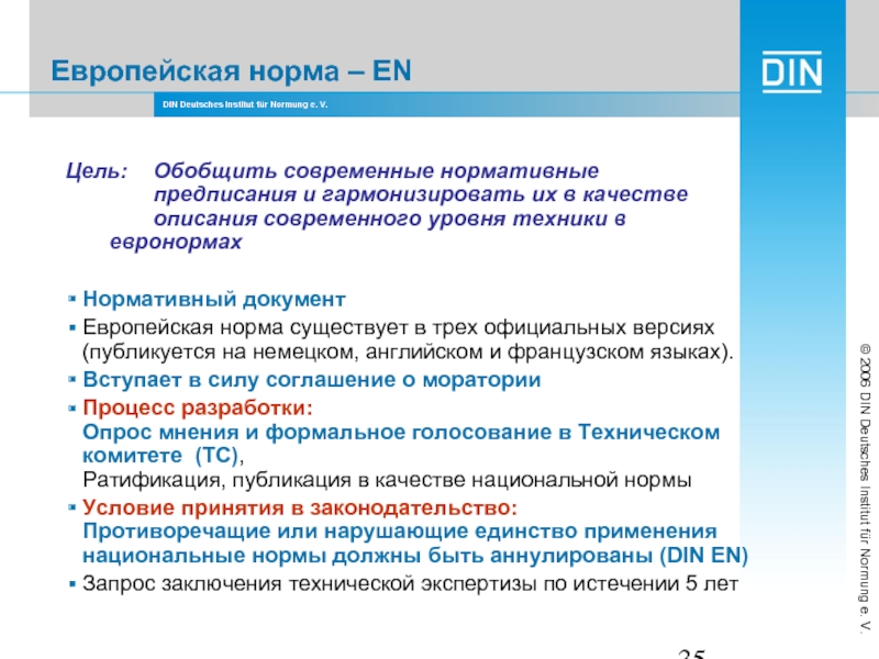 Разработка аналогично „нормальной“ евронорме (EN)