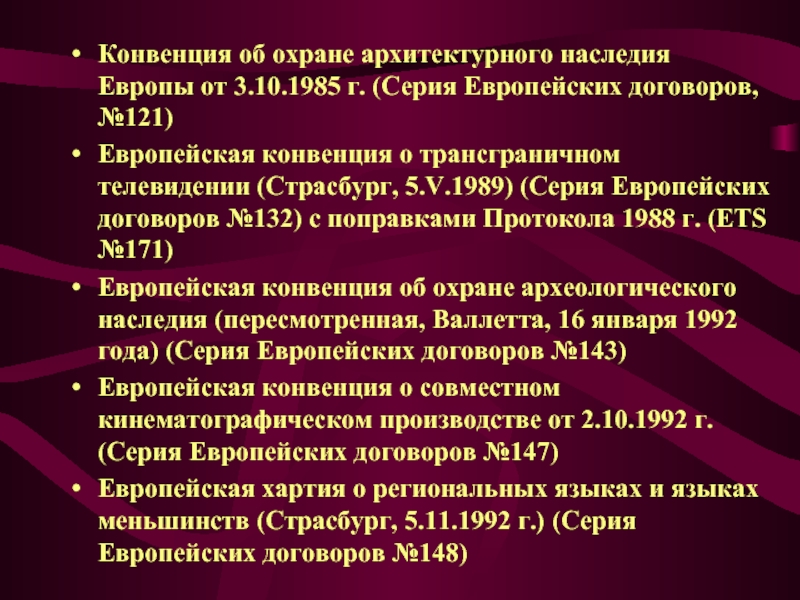 Европейской конвенции об охране аудиовизуального наследия от 8.11.01 (Серия Европейских договоров №183)