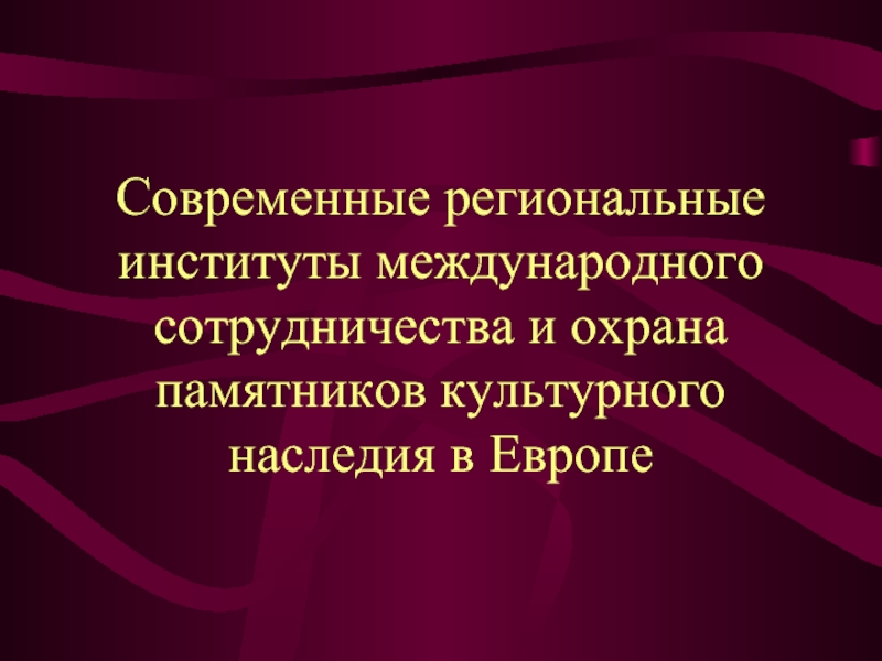 Слайд 21Современные региональные институты международного сотрудничества и охрана памятников культурного наследия в