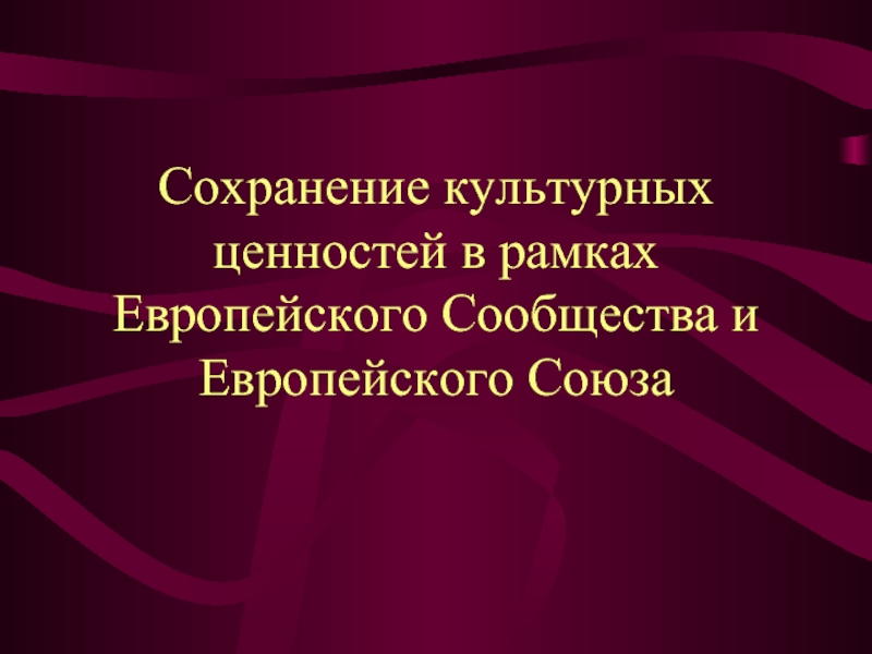 Слайд 32Сохранение культурных ценностей в рамках Европейского Сообщества и Европейского Союза