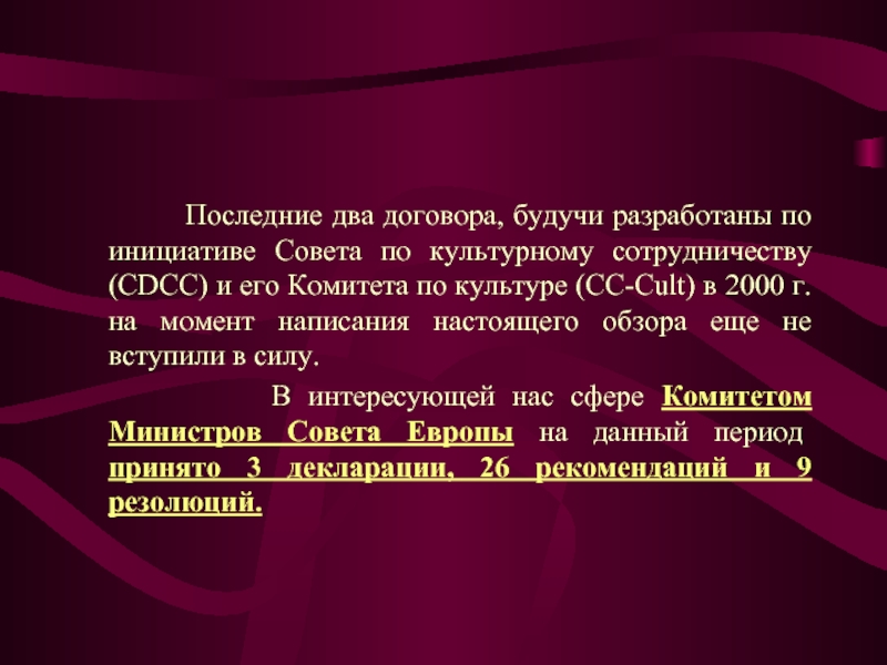 по инициативе Совета по культурному сотрудничеству (CDCC) и его Комитета по культуре (CC-Cult) в 2000 г. на момент написания настоящего обзора еще не вступили в силу.