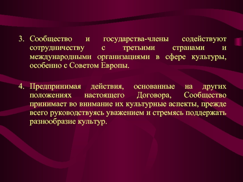 Слайд 36Сообщество и государства-члены содействуют сотрудничеству с третьими странами и международными организациями