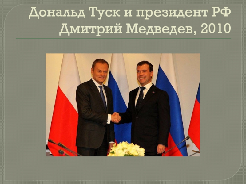 Слайд 19Дональд Туск и президент РФ Дмитрий Медведев, 2010