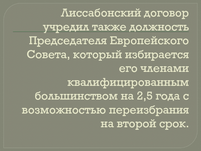 Слайд 9Лиссабонский договор учредил также должность Председателя Европейского Совета, который избирается его