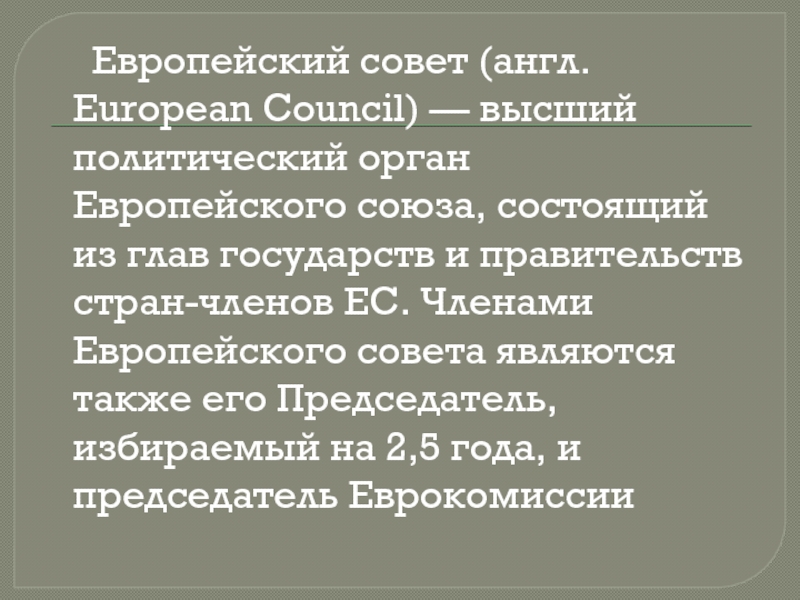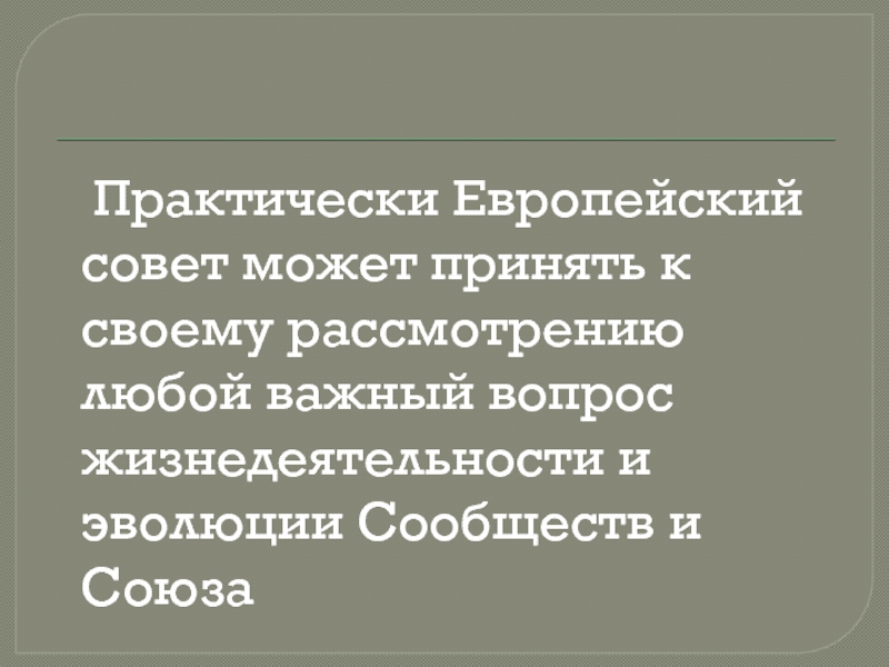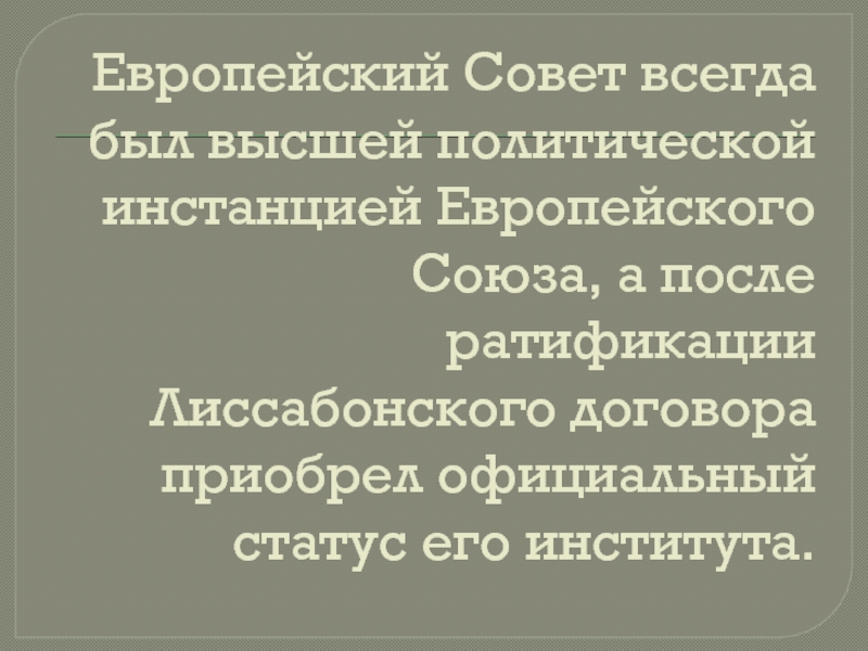 Слайд 8Европейский Совет всегда был высшей политической инстанцией Европейского Союза, а после