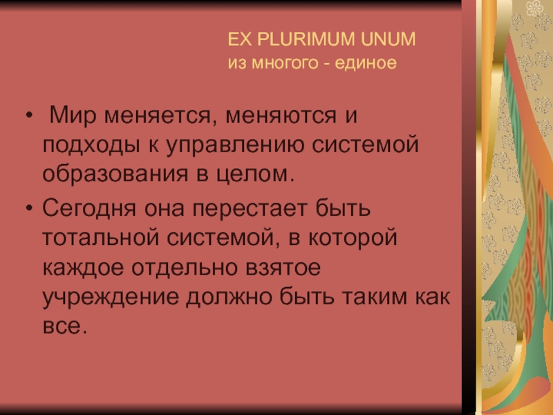 Сегодня она перестает быть тотальной системой, в которой каждое отдельно взятое учреждение должно быть таким как все.