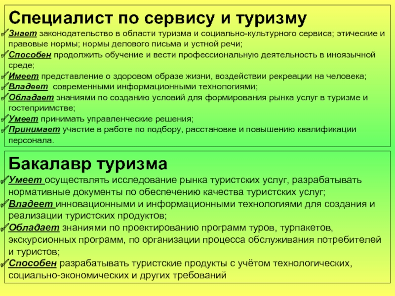 Обладает знаниями по проектированию программ туров, турпакетов, экскурсионных программ, по организации процесса обслуживания потребителей и туристов;