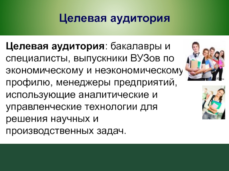 Целевая аудитория: бакалавры и специалисты, выпускники ВУЗов по экономическому и