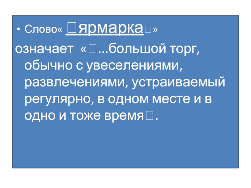 означает «...большой торг, обычно с увеселениями, развлечениями, устраиваемый регулярно,