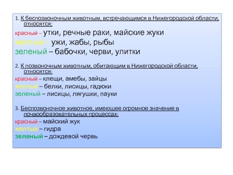 Слайд 51. К беспозвоночным животным, встречающимся в Нижегородской области, относятся: