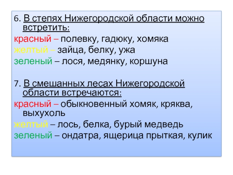 Цель: обобщить и систематизировать знания о фауне Нижегородской области