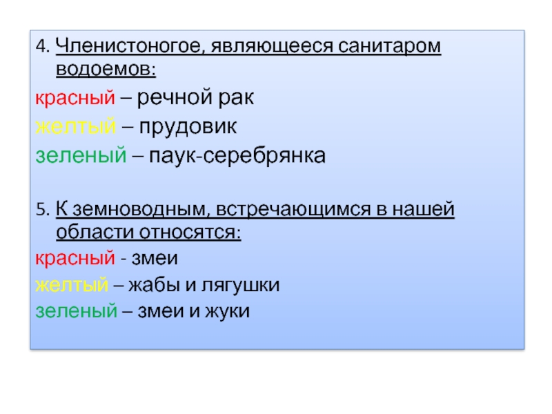 Слайд 64. Членистоногое, являющееся санитаром водоемов:
