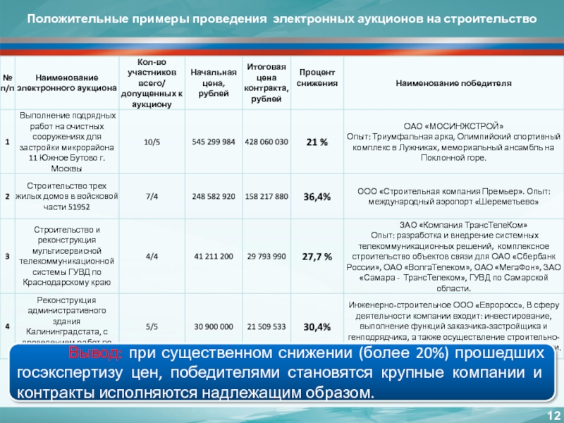 Введены аукционы в электронной форме, создана конкурентная среда (заказчик получает товар заданного им качества по минимальной цене)