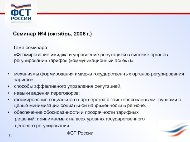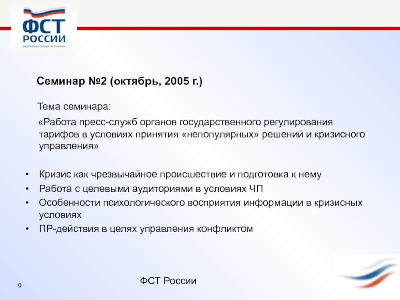 «Работа пресс-служб органов государственного регулирования тарифов в условиях принятия «непопулярных» решений и кризисного управления»