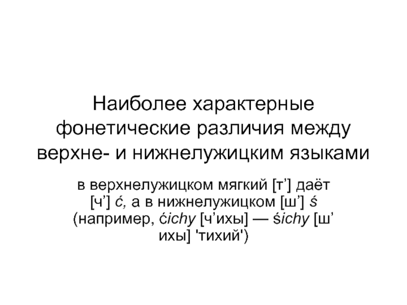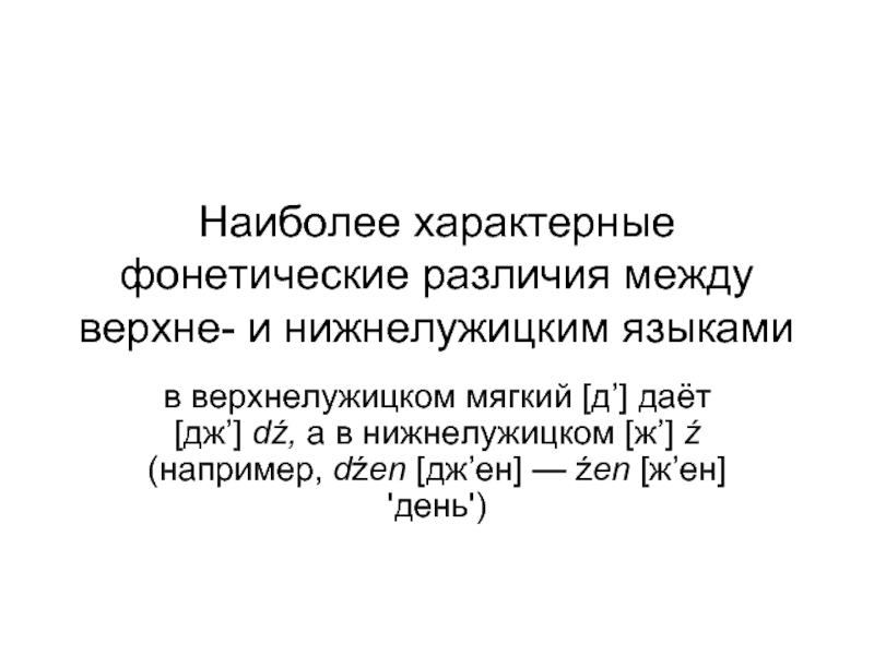 Слайд 675Наиболее характерные фонетические различия между верхне- и нижнелужицким языками