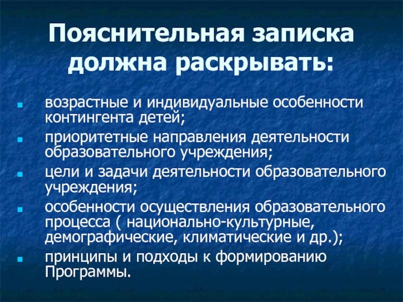 особенности осуществления образовательного процесса ( национально-культурные, демографические, климатические и др.);