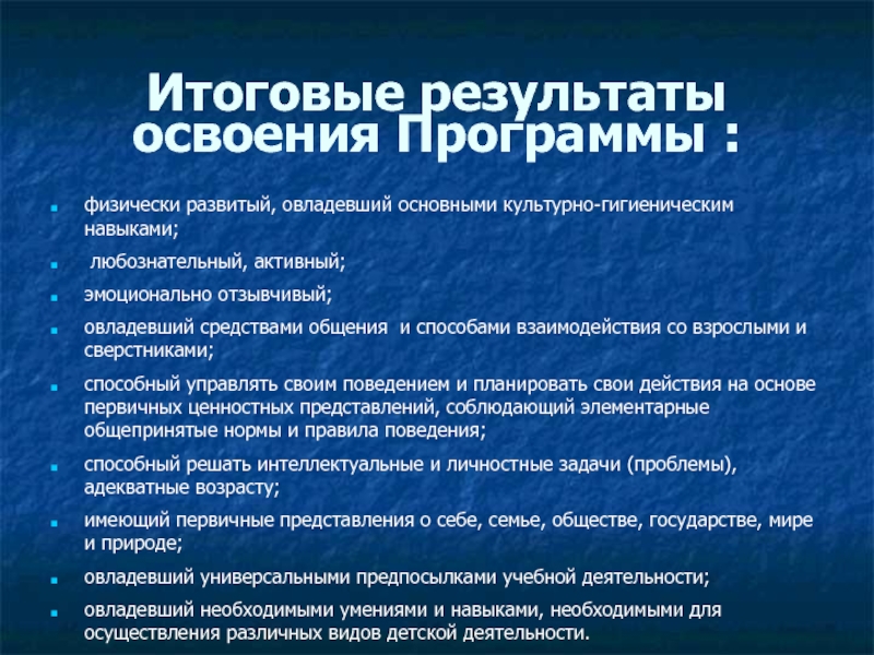 планируемые результаты освоения детьми основной общеобразовательной программы дошкольного образования;