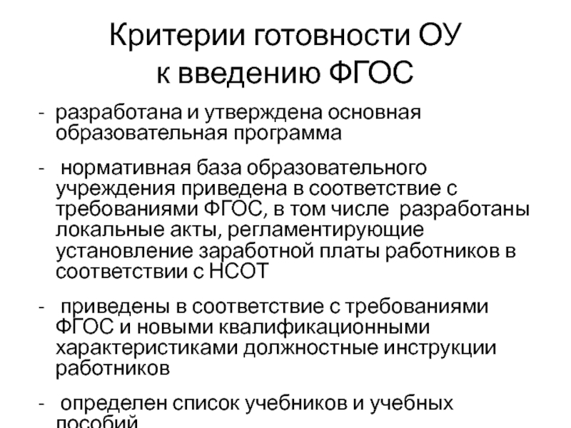 нормативная база образовательного учреждения приведена в соответствие с требованиями ФГОС, в том числе разработаны локальные акты, регламентирующие установление заработной платы работников в соответствии с НСОТ