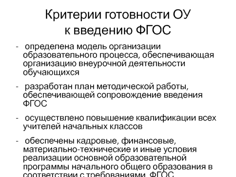 обеспечены кадровые, финансовые, материально-технические и иные условия реализации основной образовательной программы начального общего образования в соответствии с требованиями ФГОС.