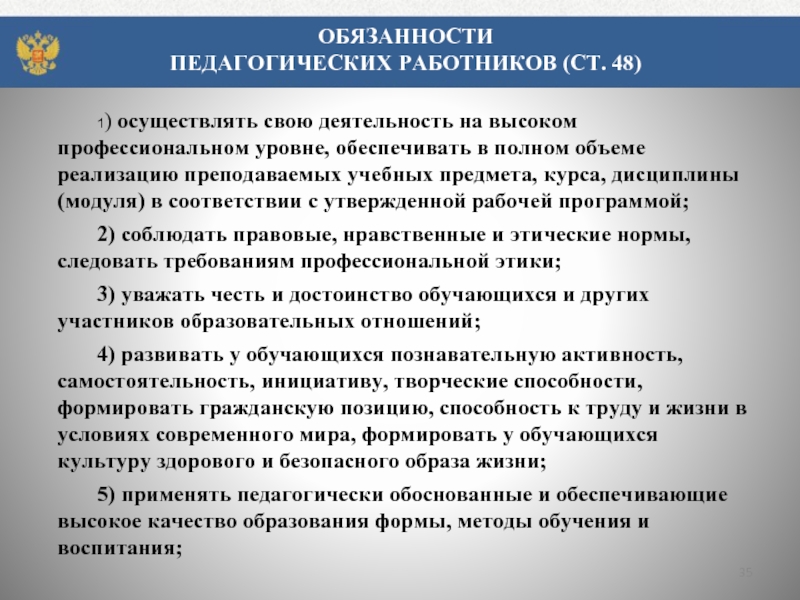 ПЕДАГОГИЧЕСКИХ РАБОТНИКОВ (СТ. 48)