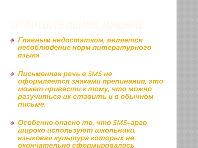 Особенно опасно то, что SMS-арго широко используют школьники, языковая культура которых не окончательно сформировалась.