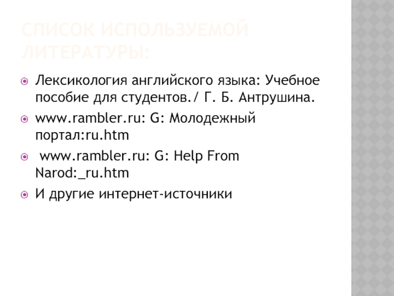 Лексикология английского языка: Учебное пособие для студентов./ Г. Б.
