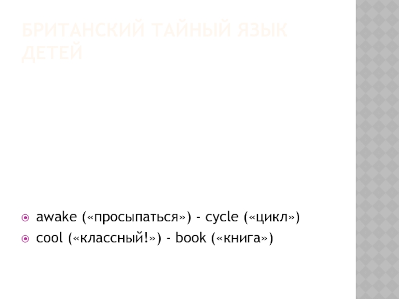 Слайд 10БРИТАНСКИЙ ТАЙНЫЙ ЯЗЫК ДЕТЕЙ