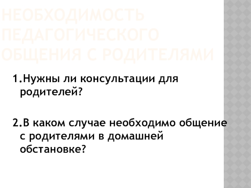 Слайд 9НЕОБХОДИМОСТЬ ПЕДАГОГИЧЕСКОГО ОБЩЕНИЯ С РОДИТЕЛЯМИ