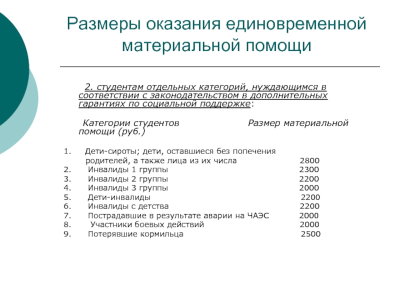 2. Для лиц, имеющих низкий уровень материального обеспечения: