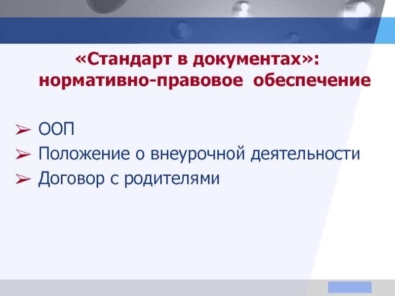 Слайд 2«Стандарт в документах»: нормативно-правовое обеспечение