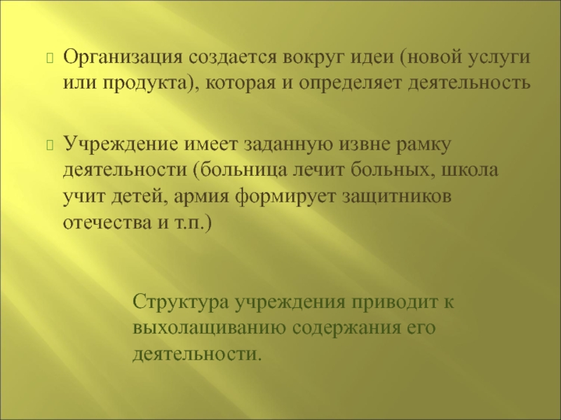 Структура учреждения приводит к выхолащиванию содержания его деятельности.