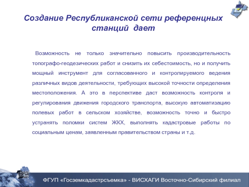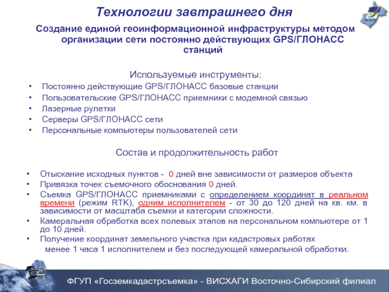 Создание единой геоинформационной инфраструктуры методом организации сети постоянно действующих GPS/ГЛОНАСС станций