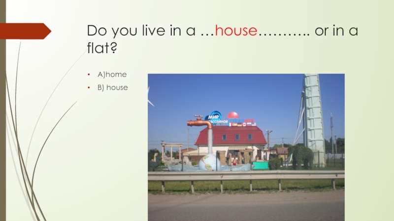 Слайд 4Do you live in a …house……….. or in a flat?