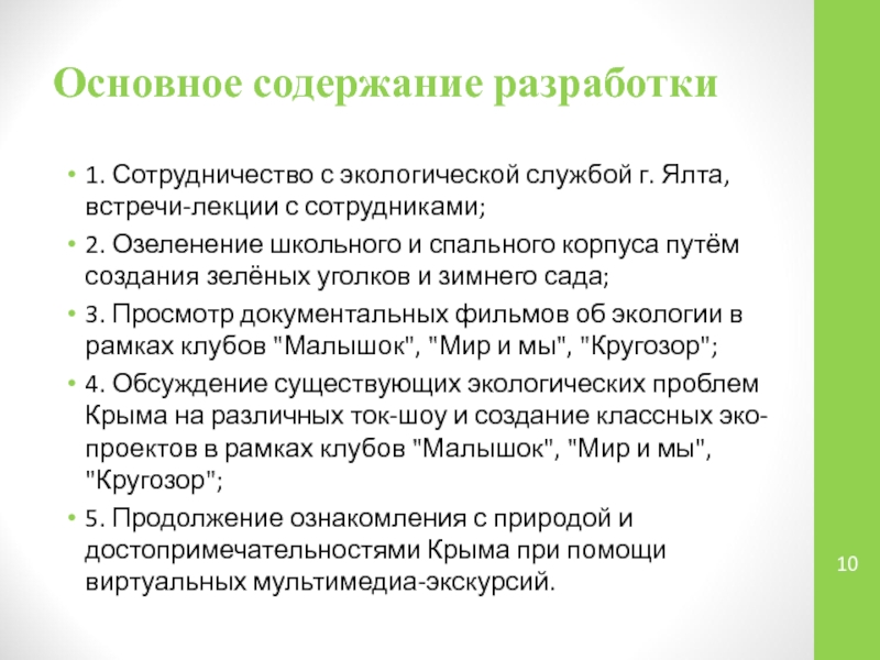 Слайд 10Основное содержание разработки
