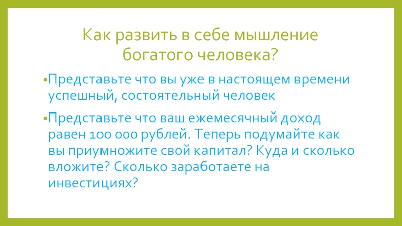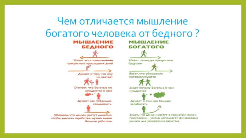 Слайд 2Чем отличается мышление богатого человека от бедного ?
