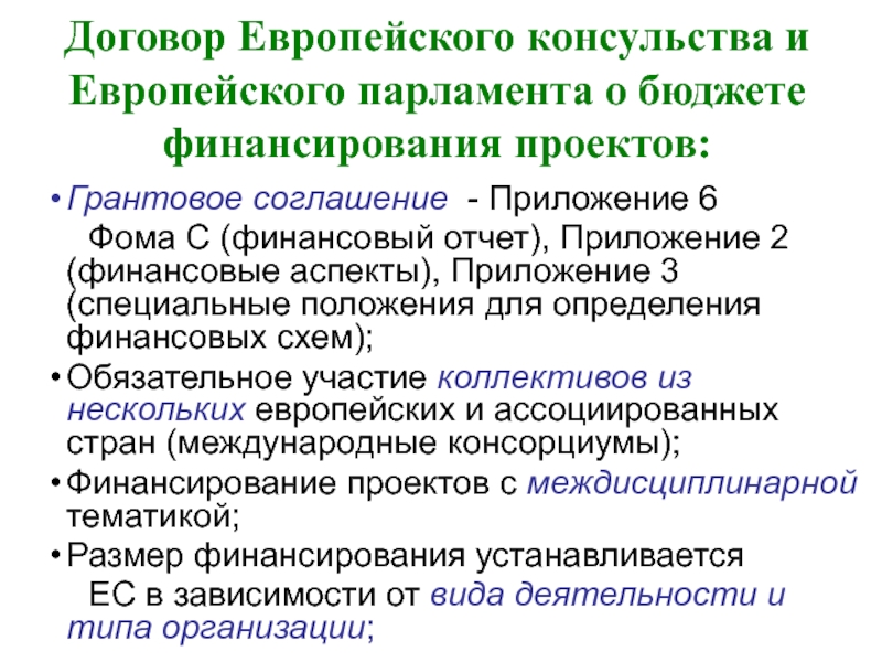 Договор Европейского консульства и Европейского парламента о бюджете финансирования проектов: